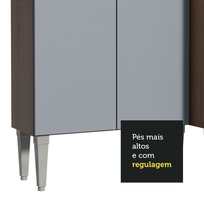 É fabricada com materiais de qualidade superior, como puxadores com alumínio, corrediças e dobradiças metálicas e pés em PVC com regulagem para pequenas imperfeições no piso.