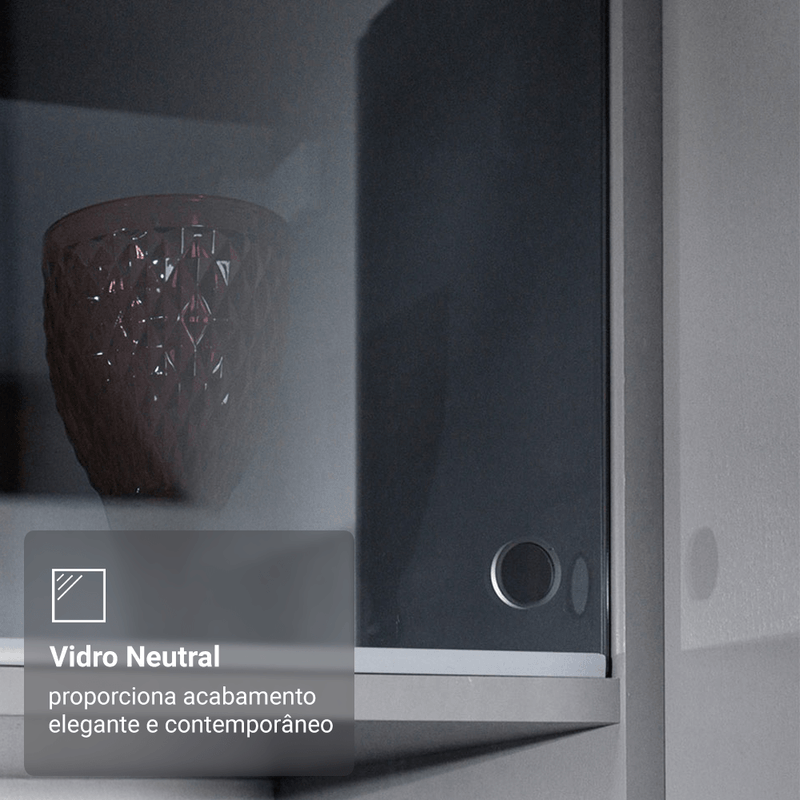 Fabricado com materiais de qualidade superior, conta com dobradiças metálicas nas portas, corrediças telescópicas na gaveta, puxadores de alumínio e lindos vidros no modelo neutral.