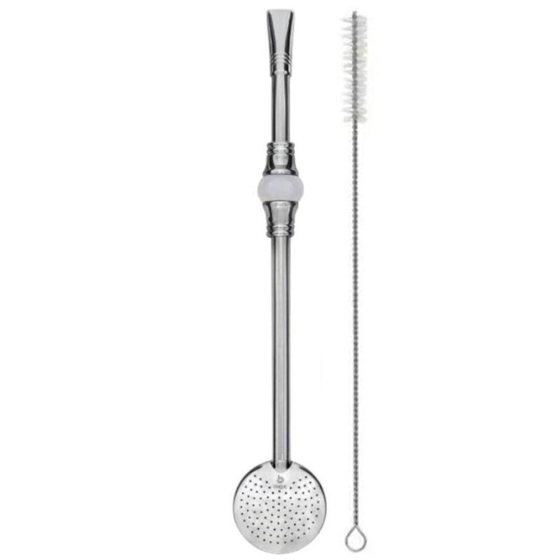 Bomba de Chimarrão Inox 23cm Anel Pérola Bojo Mil Furos Removível Erva Mate.