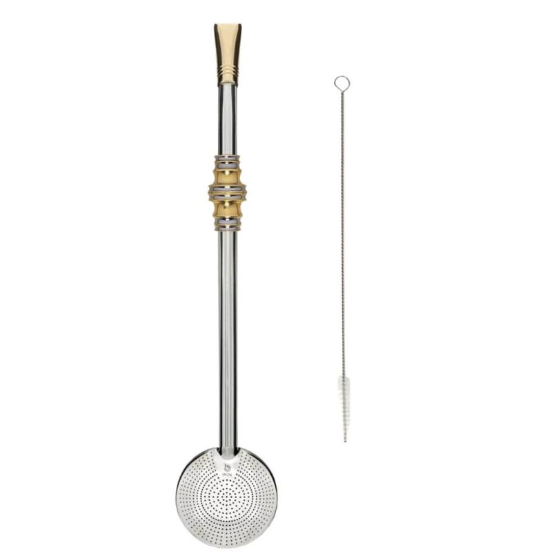 Bomba de Chimarrão Inox 24cm com Anel Trabalhado Bojo Mil Furos Escovinha Bortonaggio