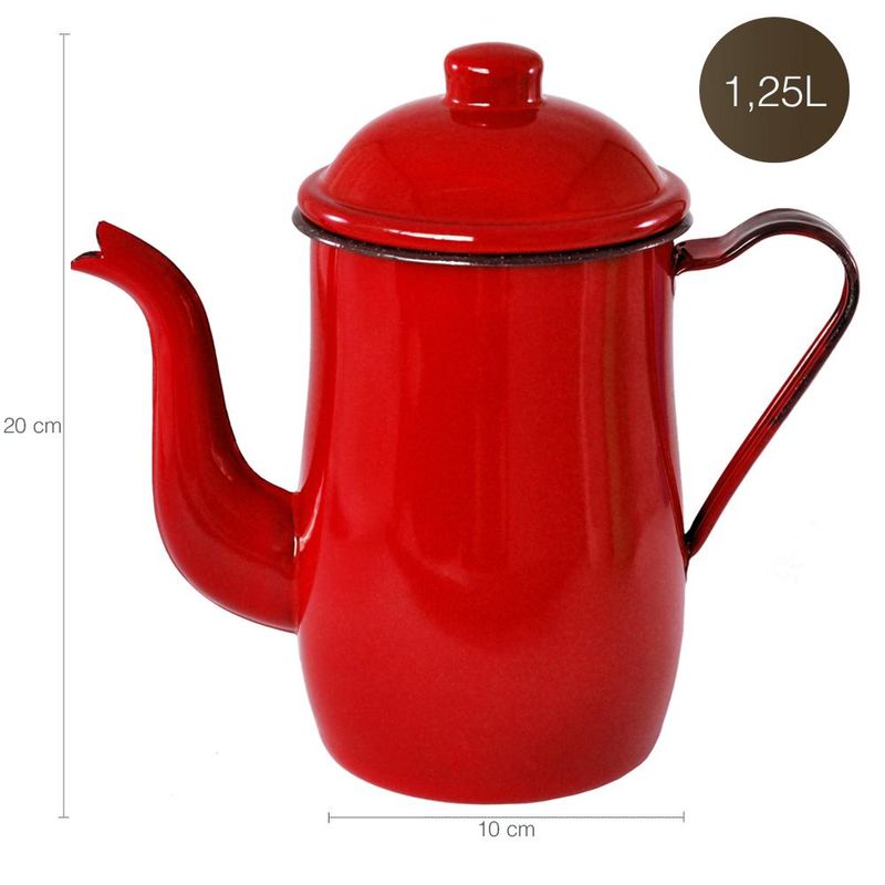 Garantia: 90 Dias / Peso: 800g / Cor: Vermelho / Conteúdo: 1 Bule Esmaltado 1,25L e 12 Xícaras 70ml / Ref: 220E054X12