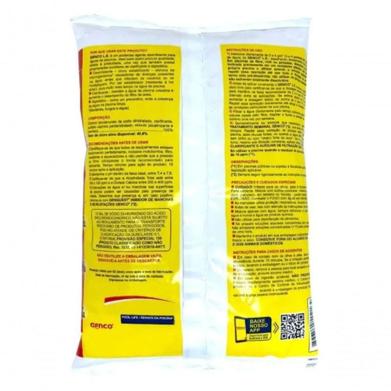 Cloro Granulado Para Piscina Múltipla Ação 3 em 1 Genco 1kg Desinfetante Clarificante Algistático