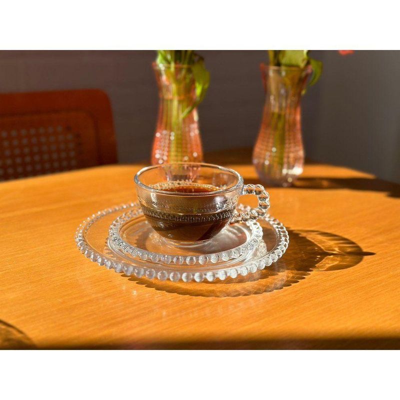 Combo Kit Para Chá 4 Xícaras 180 Ml Com Pires + 4 Pratos Sobremesa Pearl Bolinha Wolff Transparente