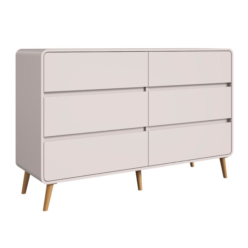 A Cômoda 6 Gavetas Curve Bege Dunas da Completa Móveis combina funcionalidade, praticidade e elegância em um design moderno e atemporal. Seus cantos arredondados conferem leveza ao ambiente, enquanto as molduras laterais em MDF garantem qualidade superior e resistência. Com seis gavetas equipadas com corrediças telescópicas, oferece amplo espaço para organização de roupas e acessórios, além de pés plásticos que proporcionam estabilidade e praticidade no uso diário. É a escolha ideal para quem busca um móvel versátil, durável e com acabamento sofisticado.