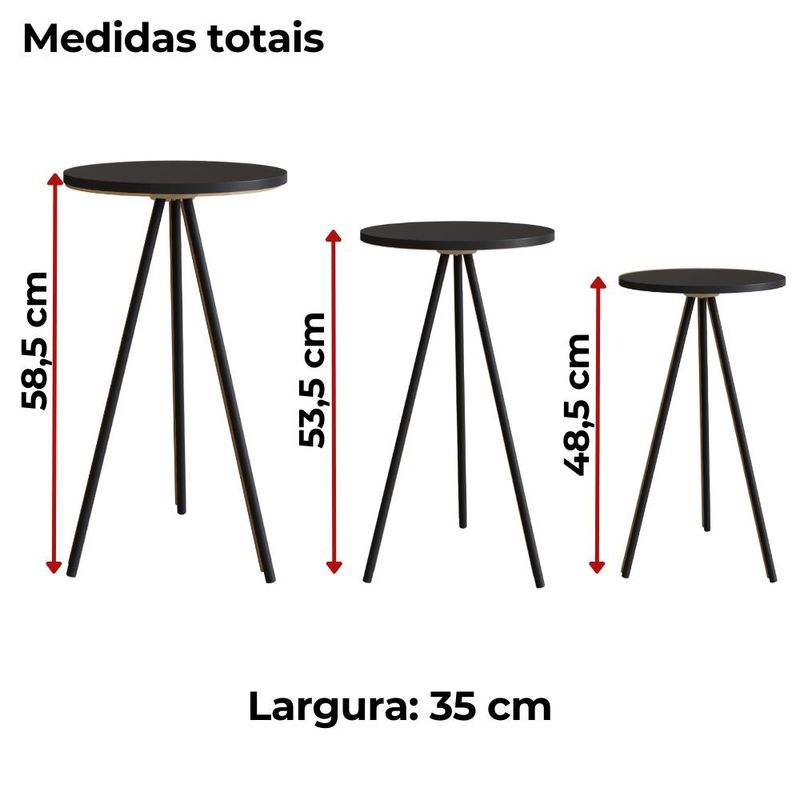 Conjunto de 3 Mesas Laterais 27957, desenvolvido para unir funcionalidade e organização em ambientes compactos. Conta com estrutura metálica com pintura epóxi e tampo redondo em MDP 15mm com acabamento BP. Ideal para auxiliar nas tarefas do dia a dia, é um produto multifuncional para compor sua sala de estar. Entregue em 3 volumes.