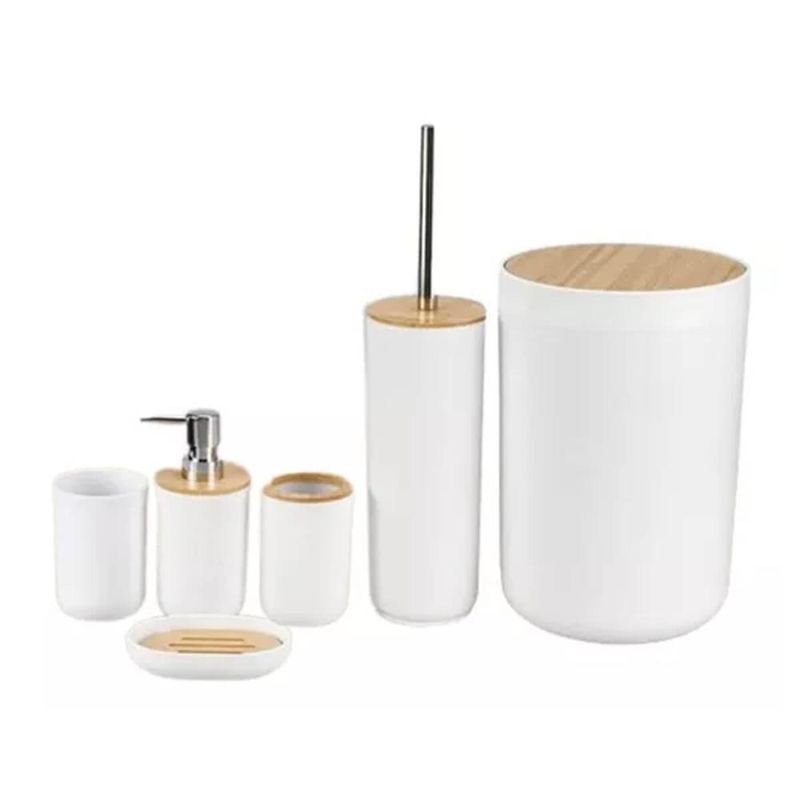 Conjunto de Banheiro Bambu Lixeira 6,5 Litros Escova Sanitária e Acessórios Lavabo 6 peças Branco