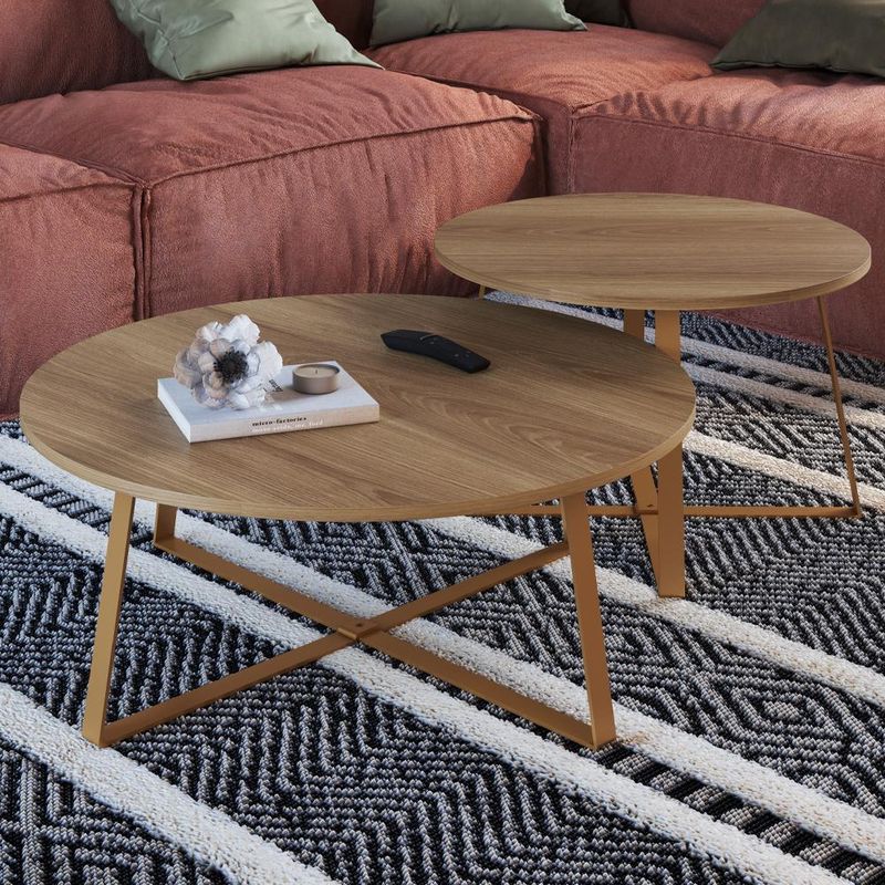 Conjunto Mesas de Centro 27960, personalidade e design moderno para sua sala de estar. Com bases metálicas em estilo geométrico (pintura epóxi) e tampos redondos em MDP 15 mm com acabamento BP. Ideal para trazer praticidade e sofisticação ao ambiente. Produto entregue em 02 volumes.