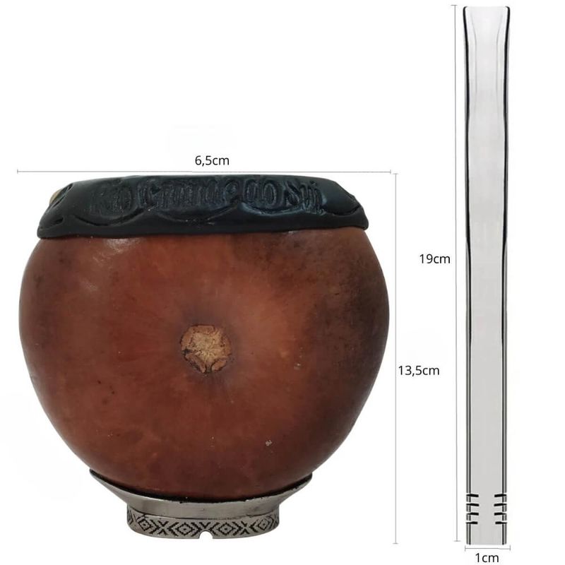 Dimensões da cuia: 13,5cm (C) x 6,5cm (L) x 13,5cm (A);