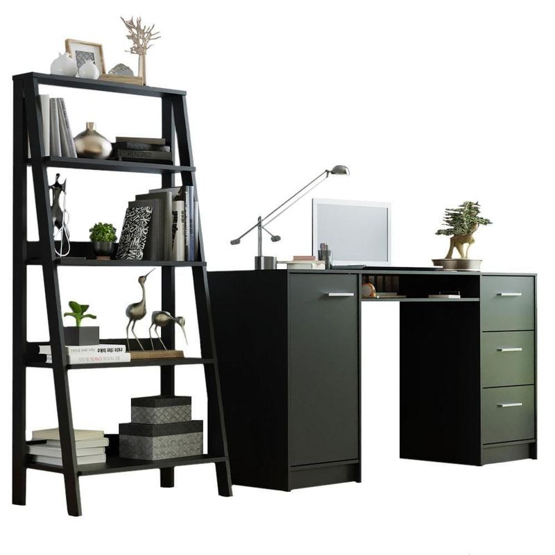 O conjunto da Escrivaninha Alaska + Estante Escada da Madesa vai deixar seu home office ou ambiente de estudos muito mais aconchegante e organizado.