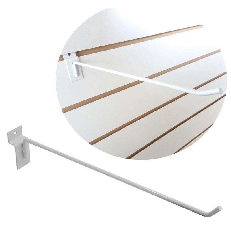 Expositor Canaletado 25cm Gancho Cabide Simples para Lojas Schmitt Branco.