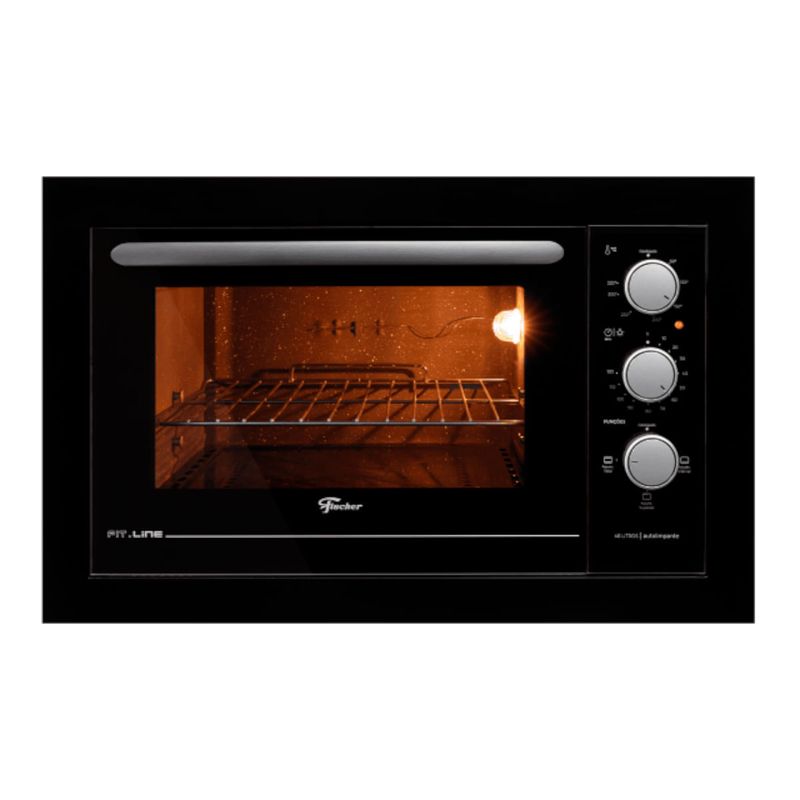 O Forno Elétrico de Embutir Fischer Fit Line 48 litros foi desenvolvido para oferecer praticidade, eficiência e um design moderno para cozinhas planejadas. Com frontal em aço carbono ou inox, ele entrega um visual sofisticado e harmoniza com diferentes estilos de ambiente. Possui isolamento térmico total, porta com vidro duplo que conserva o calor interno e contribui para a economia de energia, além de dourador para acabamentos perfeitos nas receitas. O interior conta com revestimento autolimpante, facilitando a manutenção diária, bandeja esmaltada para resíduos, grade cromada removível e bandeja coletora que auxiliam no preparo dos alimentos com organização e segurança. O forno oferece controle automático de temperatura de 50°C a 320°C, timer programável de até 120 minutos e controle independente das resistências, garantindo mais precisão no preparo. Com iluminação interna, permite acompanhar o processo de cozimento sem a necessidade de abrir a porta. Disponível nas cores Preto, Branco e Inox, é a escolha ideal para quem busca funcionalidade com acabamento elegante. Dimensões: Altura 42 cm, Largura 66,5 cm, Profundidade 55 cm, Peso 16 kg.