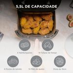 - Ela ainda permite maior precisão no preparo das suas receitas, com timer de 60 minutos e temperatura ajustável até 200C.