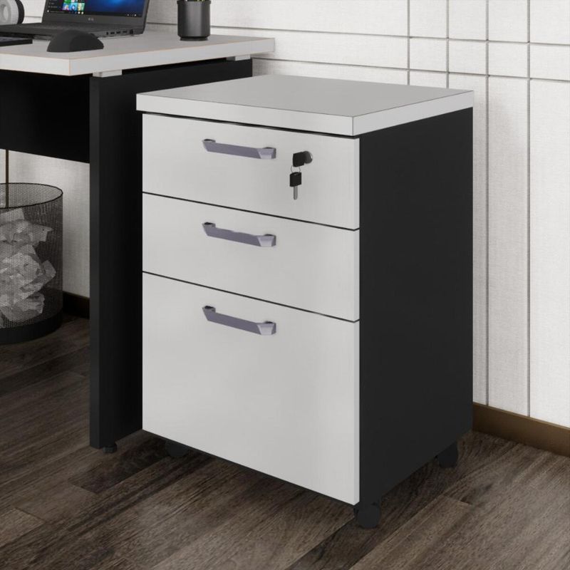 Gaveteiro de Escritório 46cm com Chave 3 Gavetas e Rodízios Multimóveis CR25302