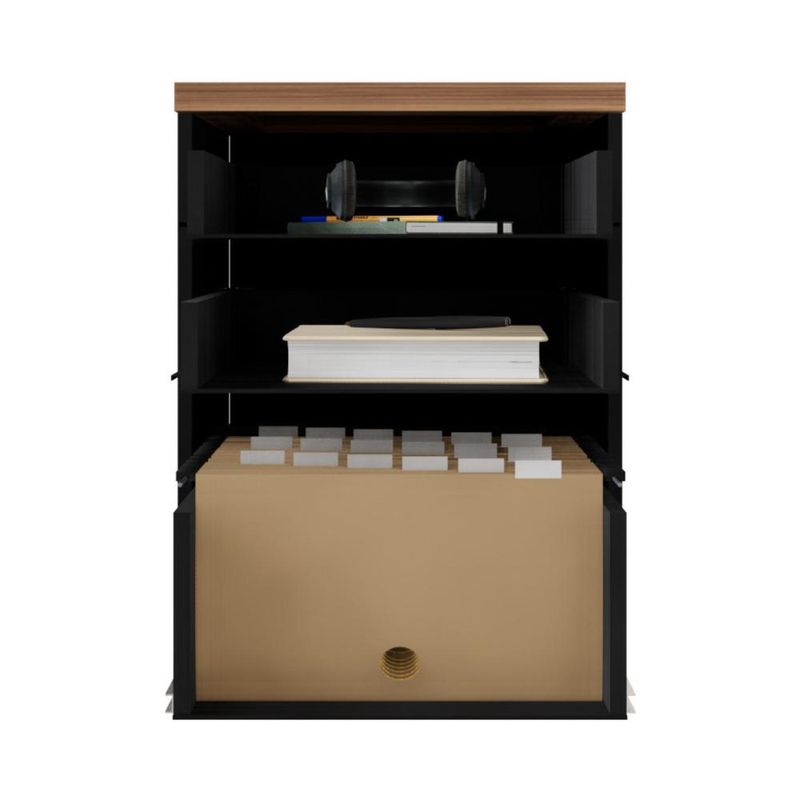- 3 gavetas funcionais: 2 com corrediças metálicas e 1 exclusiva para pasta suspensa com trilhos telescópicos.