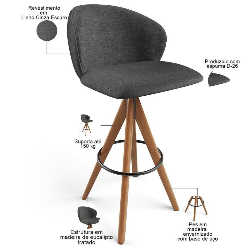 Color: Cinza | ColorFamily: Cinza | ColorSimple: Cinza | ColorSupplier: Cinza Escuro | Material: Estrutura em Madeira, Revestimento em Linho e espuma | MaterialFamily: Madeira, linho e espuma | Model: Mia | OriginCountry: Nacional | OriginState: PR | ProductContents: 06 Banquetas | ProductHeight: 260 cm | ProductInstructions: Produto para uso em ambiente interno, nao devendo ficar exposto ao sol, calor e umidade excessivos. | ProductLength: 49 cm | ProductWarranty: 90 dias após o recebimento do produto | ProductWeight: 60 kg | ProductWidth: 52 cm | SizeDescription: Altura: 260 cm x Largura: 52 cm x Profundidade: 49 cm | SupplierSimpleName: Kit 06 Banquetas Alta Bar Cozinha Sala de Jantar Bar Mia L02 Linho Cinza Escuro - Lyam Decor