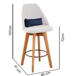 Kit 08 Banquetas Alta Maya Giratória Com Encosto Gourmet Linho Bege E Almofada Corino Azul Marinho - Aurora Line