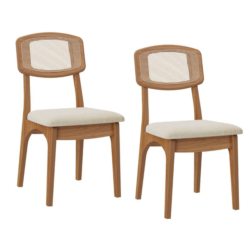 Kit com 2 Cadeiras Dalla Costa fabricadas em 100% MDF com acabamento em pintura UV fosca na cor Freijó, assento estofado em tecido Tweed Liso Claro de alta qualidade, encosto em palha sintética que garante conforto e estilo, estrutura resistente que suporta até 120 kg, ideal para sala de jantar, cozinha ou ambientes integrados, une design moderno com durabilidade e conforto para valorizar a decoração da sua casa.