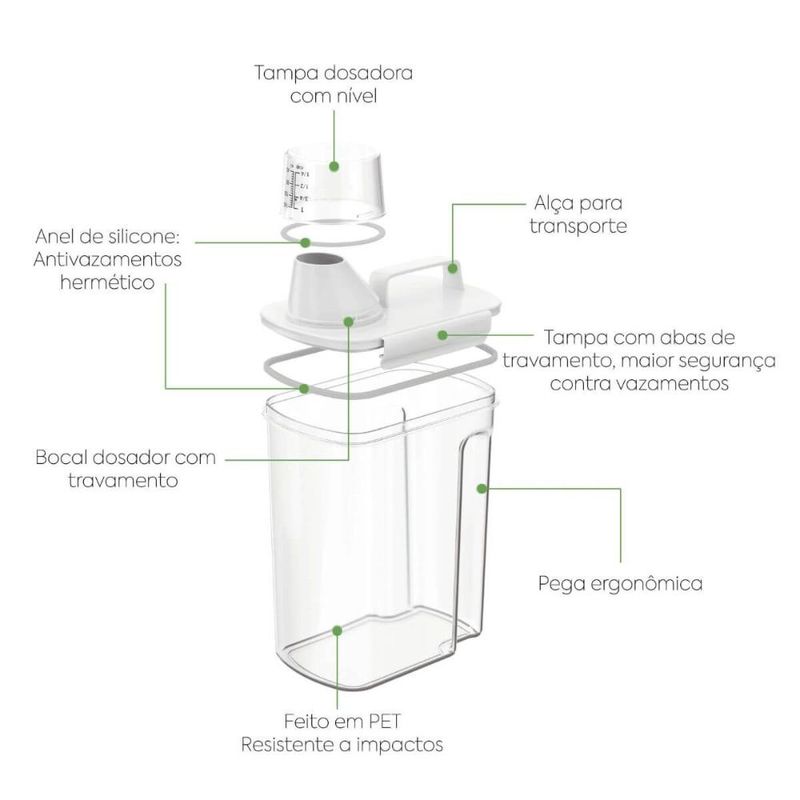 Kit 2 Dispenser com Medidor 1,5L e 3,9L Porta Sabão Amaciante Organizador Lavanderia Coza New Retrô.