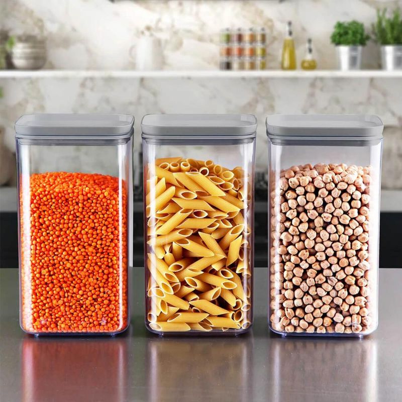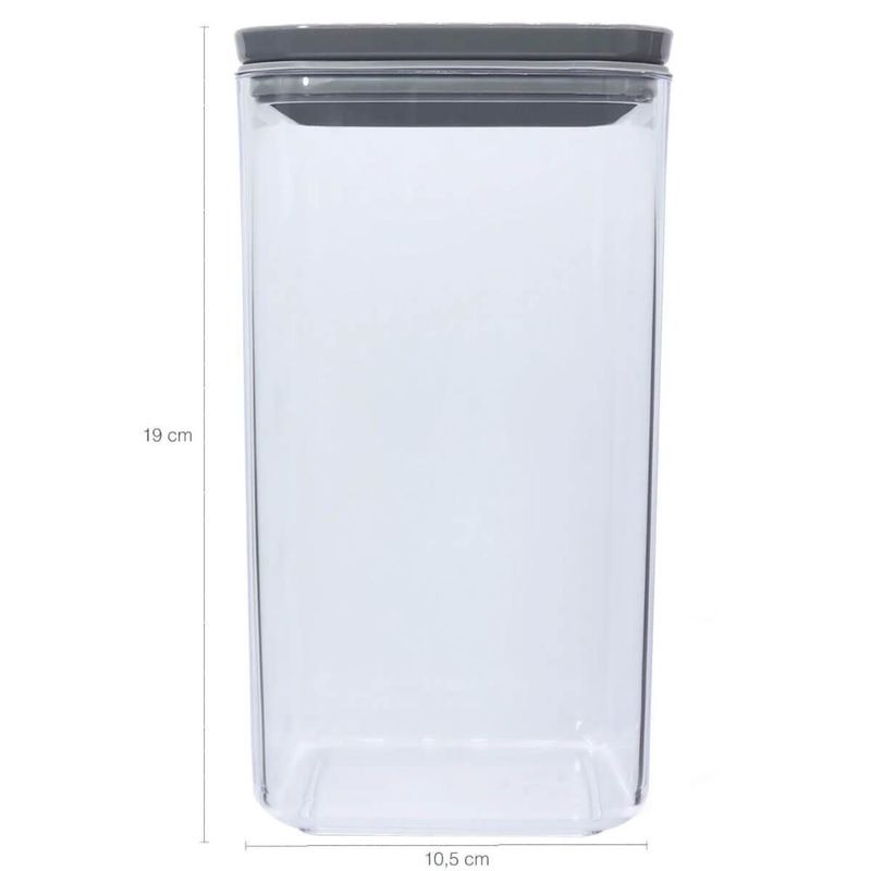 O kit 6 potes herméticos retangulares 1,5L da Plasvale é um conjunto de porta mantimentos feitos de plástico transparente e resistente. Cada pote retangular tem uma capacidade de 1,5 litros, proporcionando um espaço generoso para guardar condimentos em sua cozinha. Possuem tampa, de cor cinza, com uma borracha de vedação que se encaixa perfeitamente na base do pote, criando uma barreira eficaz contra a entrada de ar e a saída de umidade. Esses potes possuem uma vedação hermética segura que impede a entrada de ar e umidade, mantendo o conteúdo fresco por mais tempo. Os organizadores do jogo de potes para mantimentos são fáceis de limpar e possuem um design empilhável, otimizando o espaço no armário ou na despensa.