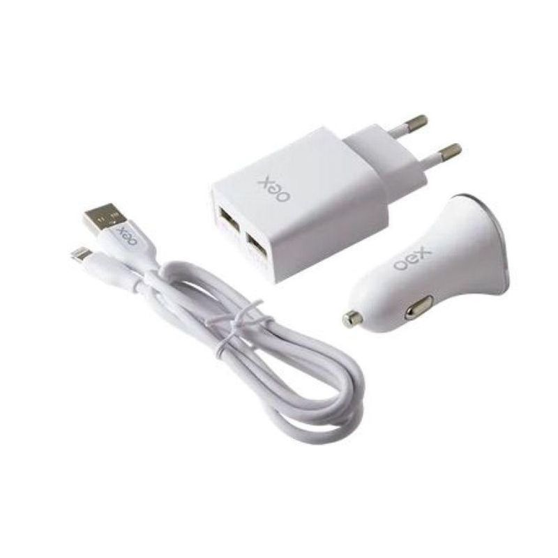 O kit 3 em 1 é indispensável para levar sempre com você! Carregador automotivo com 2 portas USB, carregador de tomada com 2 portas USB e cabo Lightning com 1 metro de comprimento. KIT AUTOMOTIVO 3 EM 1 LIGHTNING: carregador automotivo, carregador de tomada e cabo com conexão Lightning / Recarga rápida Carregador automotivo Corrente de 3.1A / Com duas portas USB / Entrada: DC12-24V / Saída: 5V/1A 5V/2.1A Carregador de tomada Corrente de 3.1A / Com duas portas USB / Tomada de 2 pinos / Entrada: AC 100-240V / Saída: 5V/1A 5V/2.1A Cabo Corrente de 2.4A / Com 1m de comprimento