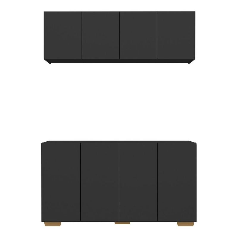 Receba seus convidados com estilo e sofisticação com o Kit Bar Armário Aéreo e Aparador 4 Portas. Fabricado em MDP (15mm) com acabamento acetinado (cerca de 20% de brilho), garante durabilidade e resistência. Composto por um aparador e um armário aéreo com 4 portas e prateleiras, oferece amplo espaço interno para organizar bebidas, copos e outros itens de bar. Seu design clean proporciona um visual moderno que combina com qualquer tipo de decoração. Além disso, o aparador possui pés em polipropileno que oferecem estabilidade e estilo único.