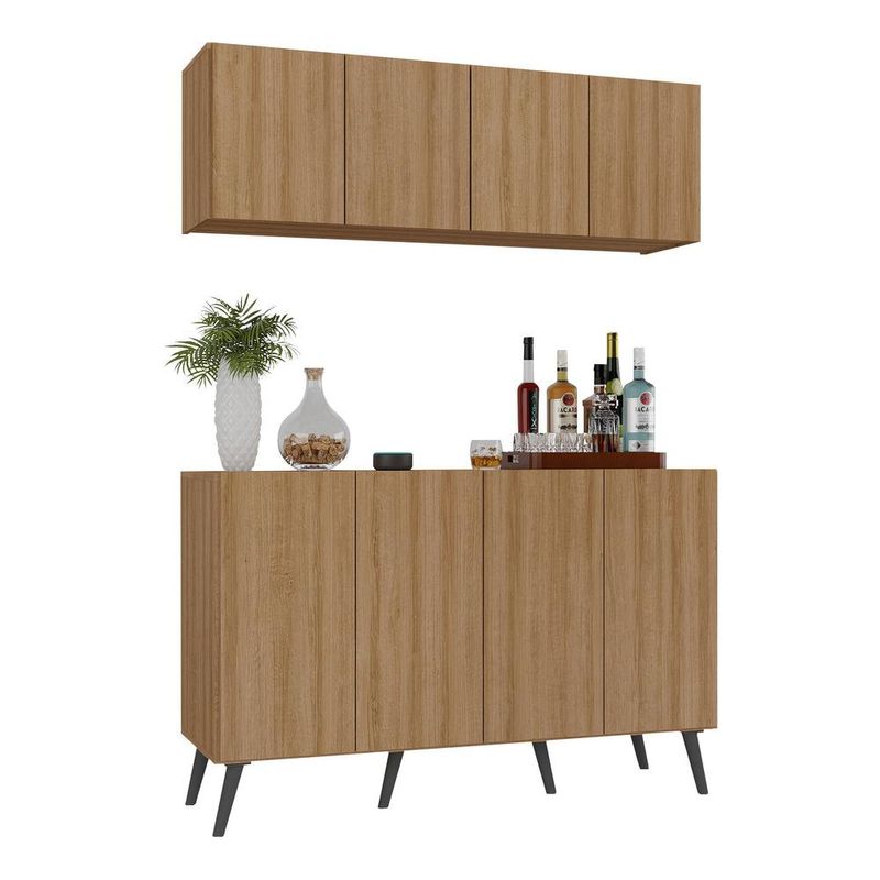 Kit Bar Armário Aéreo e Aparador 4 Portas Retrô Multimóveis MP1086