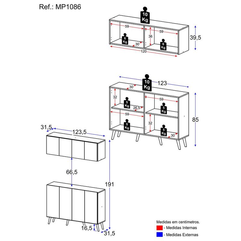 Aparador - Altura: 85cm | Largura: 123cm | Profundidade: 31,5cm
