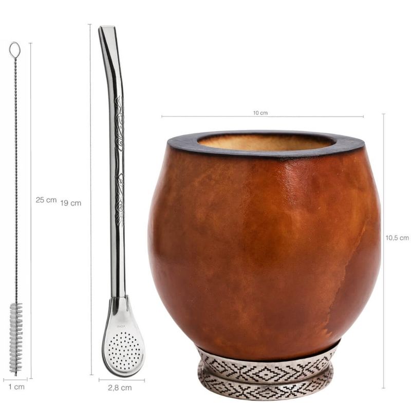 Dimensões aproximadas da cuia: 10cm (D) x 10,5cm (A), capacidade aprox.: 250ml;