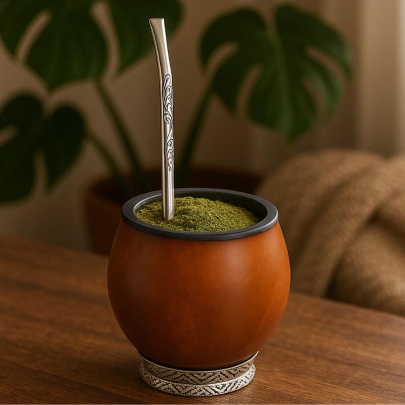 Este kit para chimarrão é a escolha perfeita para quem valoriza tradição, qualidade e praticidade na hora de preparar e saborear um bom mate. Ele é composto por uma cuia de porongo coquinho uruguaia, cuidadosamente produzida de forma artesanal, o que garante resistência, autenticidade e um design único. A cuia possui acabamento especial que destaca sua beleza natural, além de proporcionar uma ótima durabilidade e um encaixe confortável para o uso diário. Acompanha também uma bomba bojo pêra de 19cm com rosca e escovinha para limpeza, desenvolvida para oferecer praticidade na hora da higienização, além de contar com um formato ergonômico que proporciona um fluxo uniforme da erva-mate, tornando o chimarrão ainda mais agradável. Juntos, esses itens formam um kit completo que une tradição e modernidade, sendo ideal tanto para uso pessoal quanto para presentear alguém especial que compartilha da paixão pelo chimarrão.