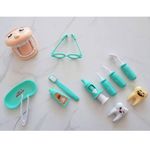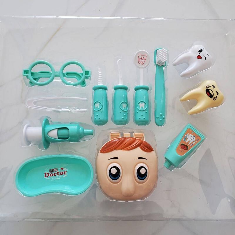 Kit Dentista Infantil Educativo Fênix Brinquedo de Criança Dentadura 12 peças Verde Água.