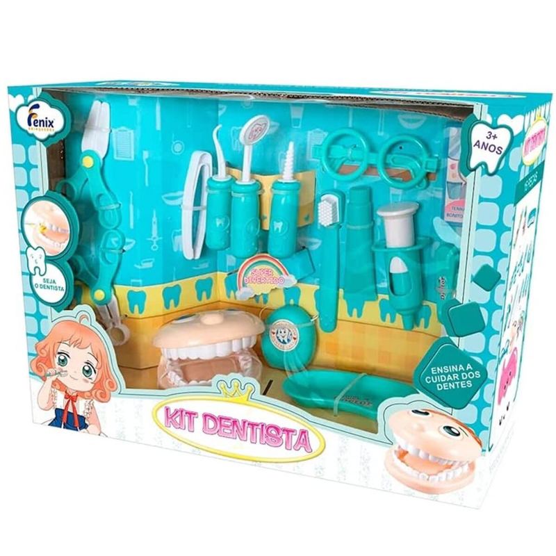 Estimule a imaginação do seu filho com o kit dentista da Fenix, um kit com tudo que um bom dentista precisa ter. Vem com espelho para ver aquela cárie bem lá no fundo, pinça para arrancar o dente, injeção para aplicar a anestesia, motorzinho para tratar daquele dente difícil, escova de dente, explorador e até uma boquinha para usar todas essas ferramentas.
