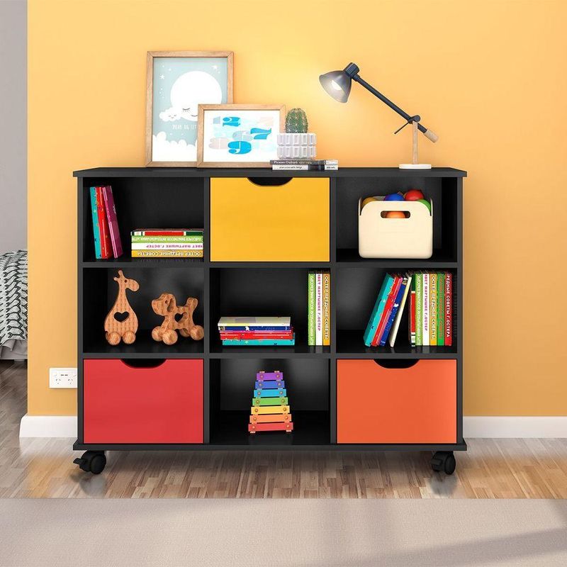 Nicho Organizador C/ 3 Gavetas Com Rodízio Roterdã Q01 - Amarena Móveis Cor Preto/colorido