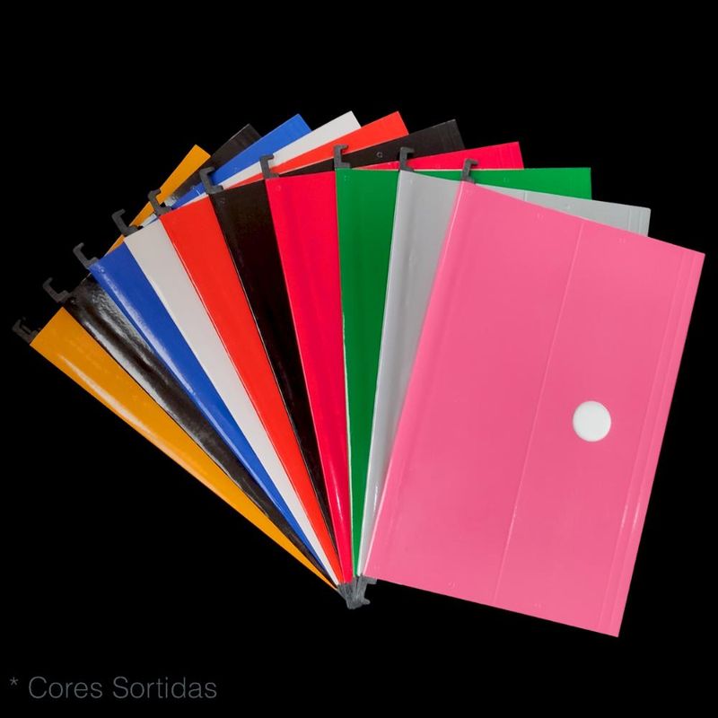 - As pastas suspensas plastificadas possuem fundo branco e hastes plásticas;