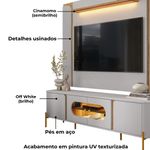 Painel Maresias E Rack Juquehy: estrutura em MDP/MDF com acabamento em pintura UV texturizada. Conjunto composto por prateleiras (MDP 25mm) com LED integrado, portas com dobradiças metálicas (sendo 02 em vidro Reflecta 3mm), passa fios embutido e detalhes usinados com bordas curvas no tampo e base. Conta ainda com puxadores metálicos e pés cilíndricos em aço (ação antiferrugem). Suporta TVs de até 75 polegadas com segurança. Este produto será entregue em 2 volumes.