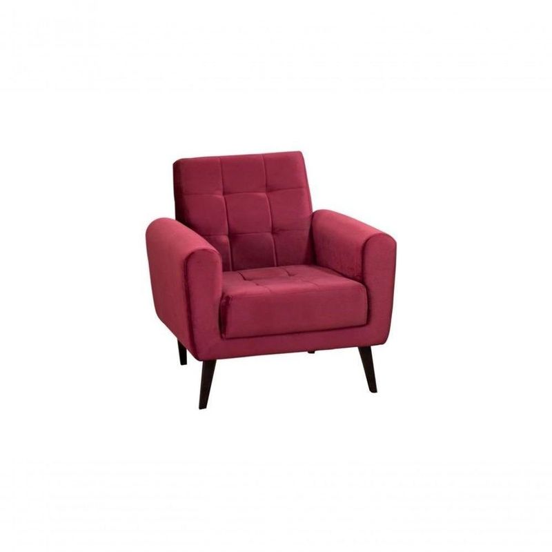 Produto com design super moderno que valoriza seu ambiente. Poltrona decorativa de um lugar suporta até 110 kg. Ideal para decoração de salas de TV, de estar e quartos. Altura: 0,88 cm Largura: 0,81cm Profundidade: 0,53 cm Peso: 15 kg Revestimento: Tecido Veludo Espuma: Assento DS26 –Braças e encosto DS20 Madeira: 85% Eucalipto, 10% Pinus e 5% duratex Percinta: Cinta elástica Pés: 4 pés palito de madeira tabaco Fixação: Grampos e parafusos Embalagem: Malha, plástico e papelão Garantia: 90 dias. Observações importantes: As imagens são ilustrativas, não acompanham objetos de decoração e eletrônicos. Pode haver alguma diferença de tonalidade entre a imagem e o produto real, por conta do tratamento de imagens e a calibração de cores do seu monitor. A montagem será de responsabilidade do comprador, não nos responsabilizamos, no ato da entrega, por subir escadas/elevadores ou transporte por guincho em apartamentos. Eventuais despesas são de responsabilidade do comprador. Confira as dimensões deste produto e certifique-se de que passará normalmente por supostos elevadores, portas, escadas e/ou corredores de sua residência. Ao receber a mercadoria, o cliente deve verificar as condições da embalagem, . store_stock_cross_docking: 13 | Produto: Poltrona | Cômodo Indicado: Salas | Tonalidade: Vermelho | Material da estrutura: Madeira