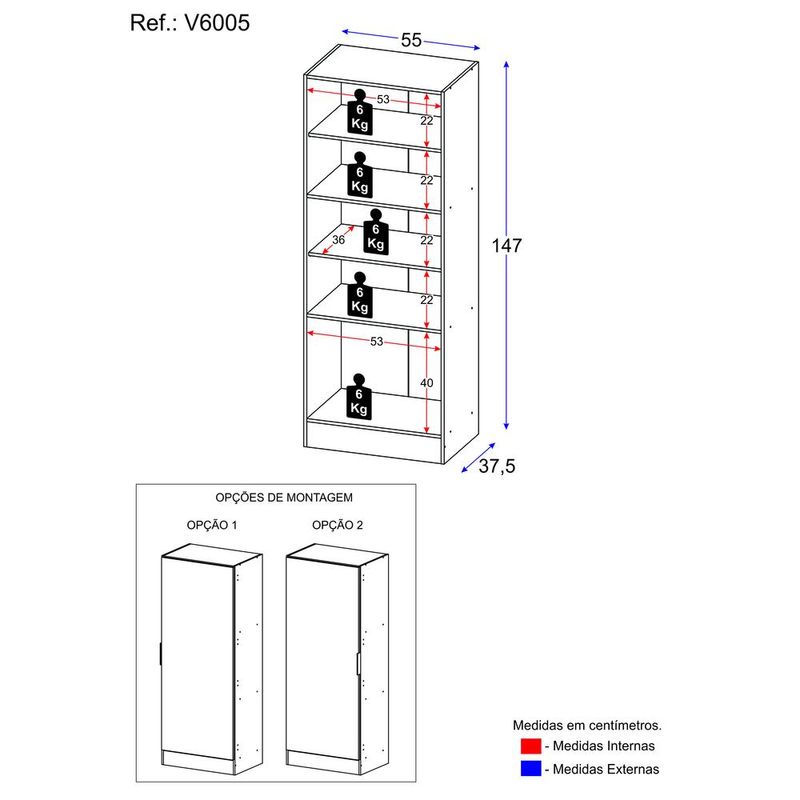 Altura: 147 cm | Largura: 55 cm | Profundidade: 37,5 cm