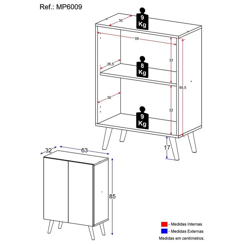 Altura: 85cm | Largura: 63cm | Profundidade: 32cm